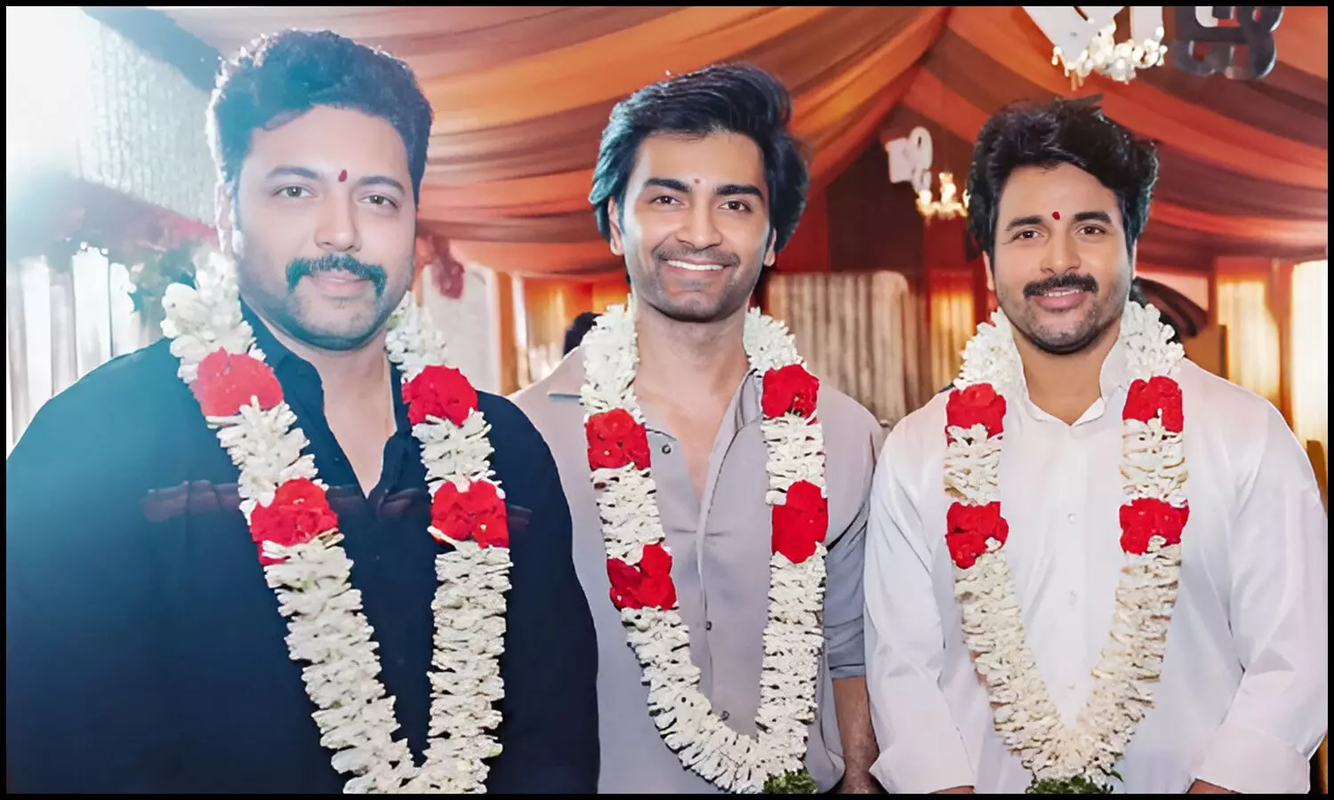 'SK25' பூஜையில் சிவகார்த்திகேயனுடன் நடிகர் ஜெயம் ரவி மற்றும் அதர்வா முரளி