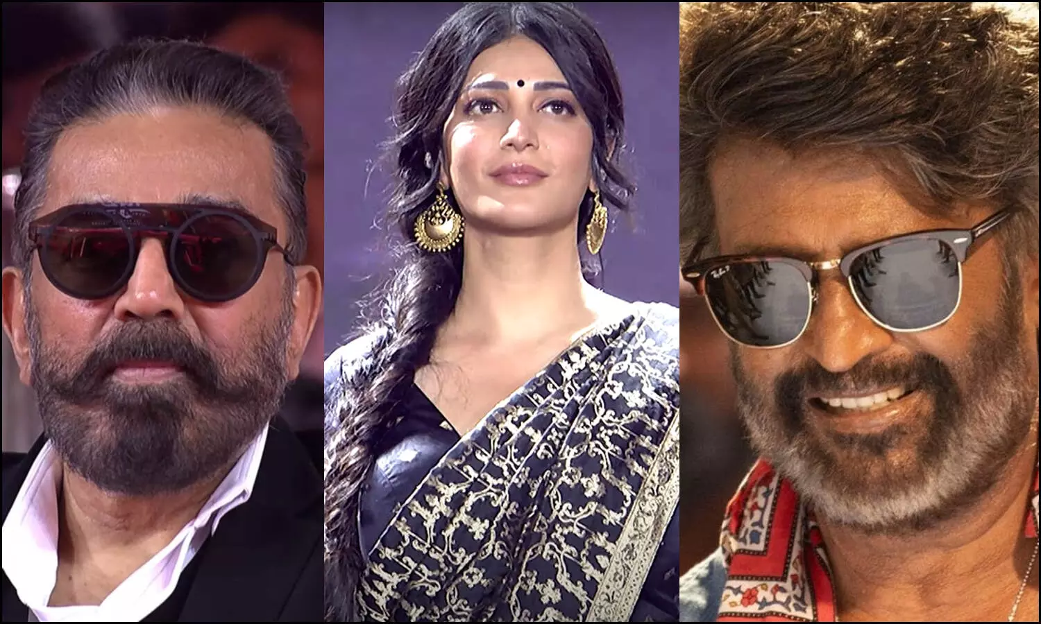 'தக் லைஃப்' இசை வெளியீட்டு விழாவில் கமல்ஹாசன் & ஸ்ருதிஹாசன் - கூலி திரைப்பட லுக்கில் ரஜினிகாந்த்