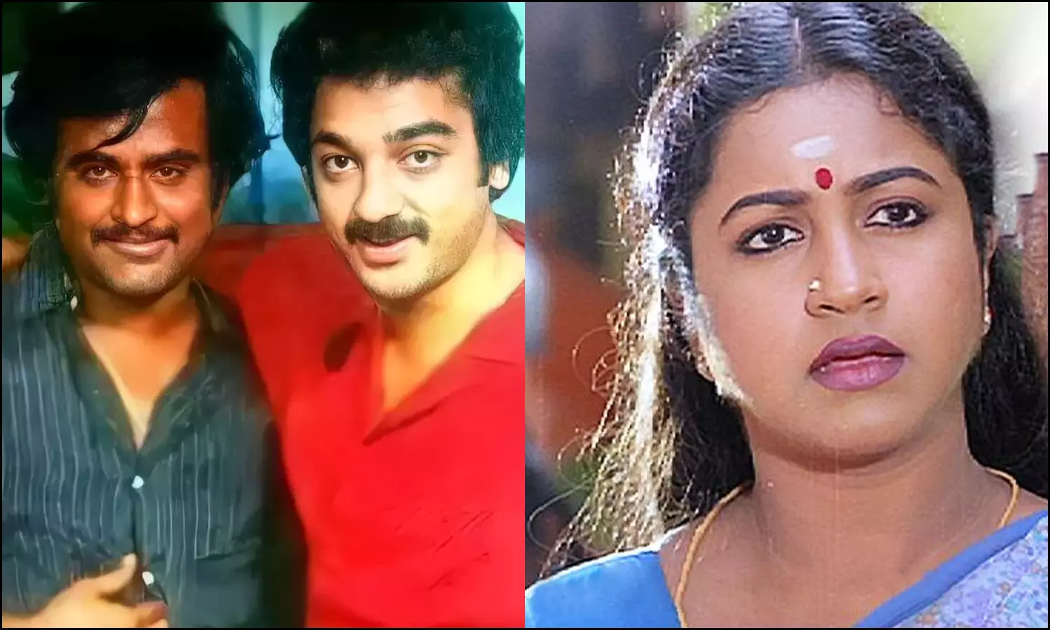 தமிழ் சினிமாவின் நட்சத்திர ஹீரோக்களான கமல்ஹாசன், ரஜினிகாந்த் மற்றும் நடிகை ராதிகா
