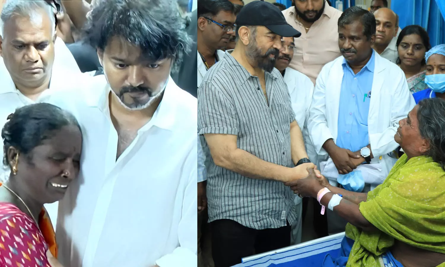 கள்ளச்சாராயத்தால் பாதிக்கப்பட்டவர்களை நேரில் சந்தித்து ஆறுதல் கூறிய விஜய் மற்றும் கமல்ஹாசன்