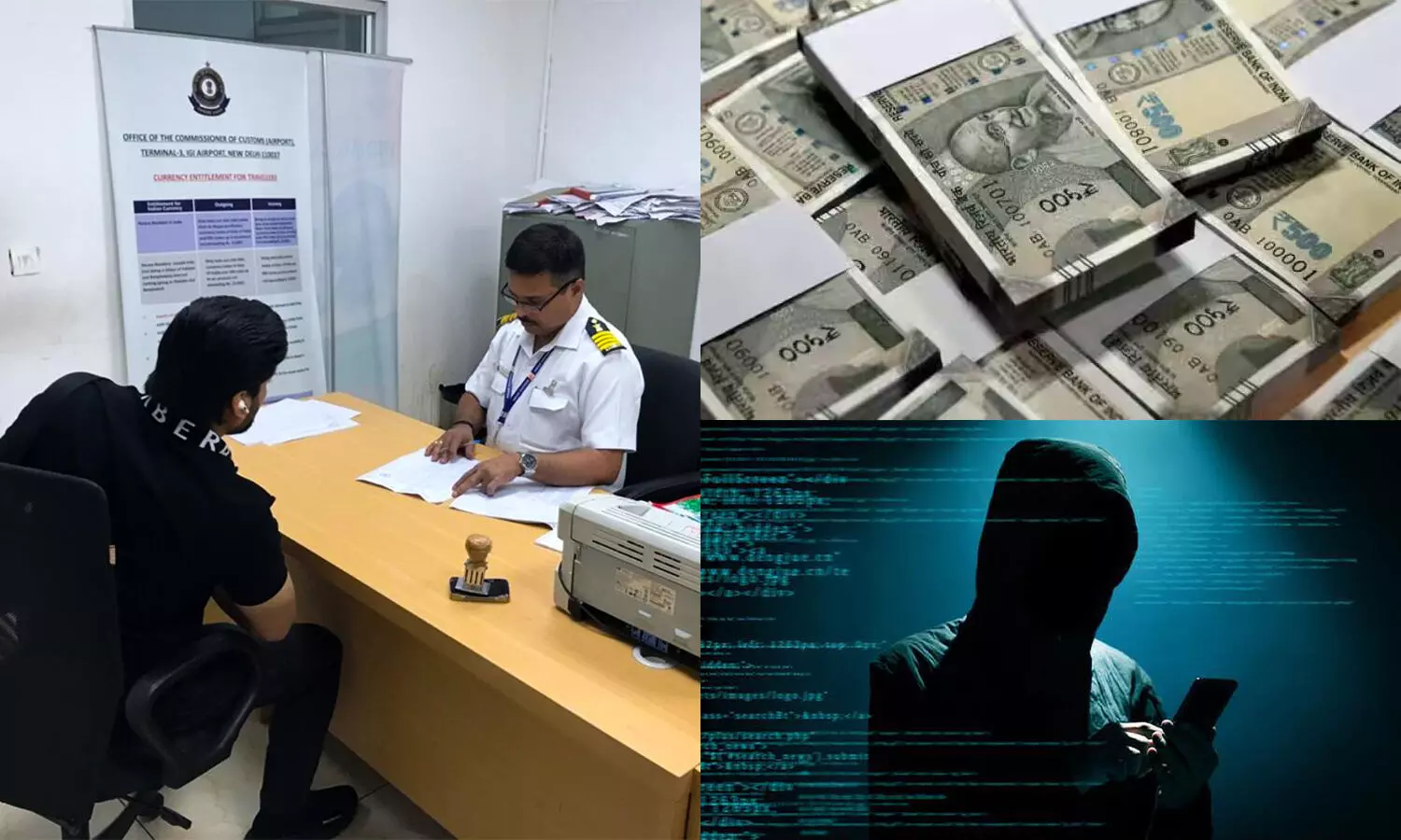 சைபர் கிரைம் போலீஸ், பண பரிமாற்றம், மோசடி கும்பல் ஆகியவற்றின் மாதிரி புகைப்பட காட்சிகள்
