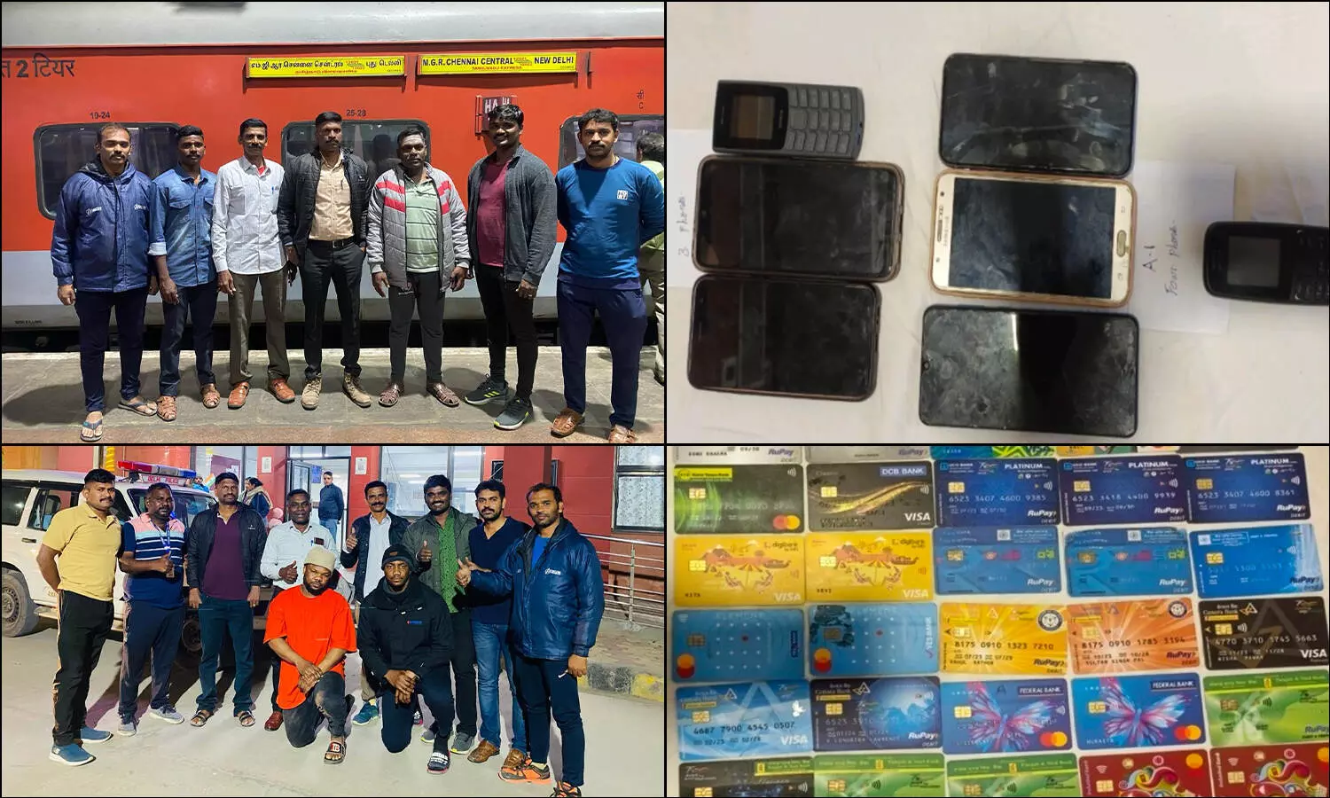 பிடிபட்ட நைஜீரிய திருடர்களிடம் இருந்து பறிமுதல் செய்யப்பட்ட 7 செல் ஃபோன்கள் மற்றும் 40 டெபிட் கார்டுகள்