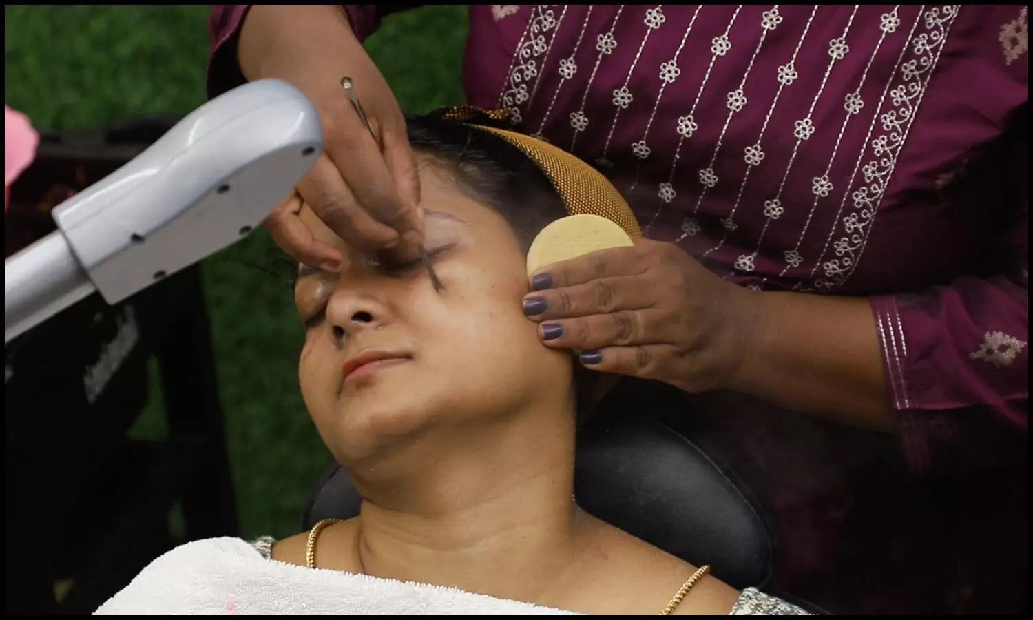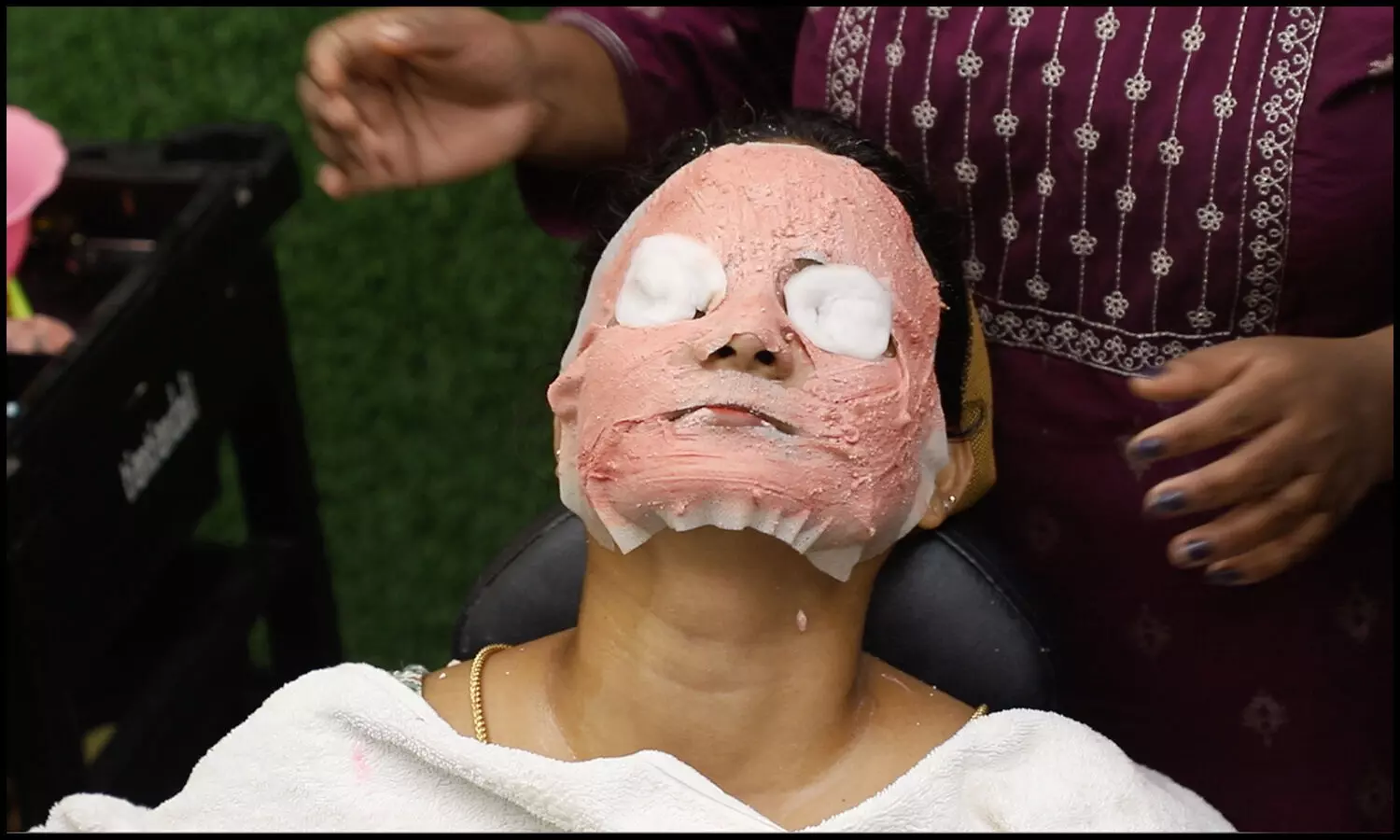ஷீட் மாஸ்க் போட்டு தெர்மோ பேக்கை அப்ளை செய்தல்