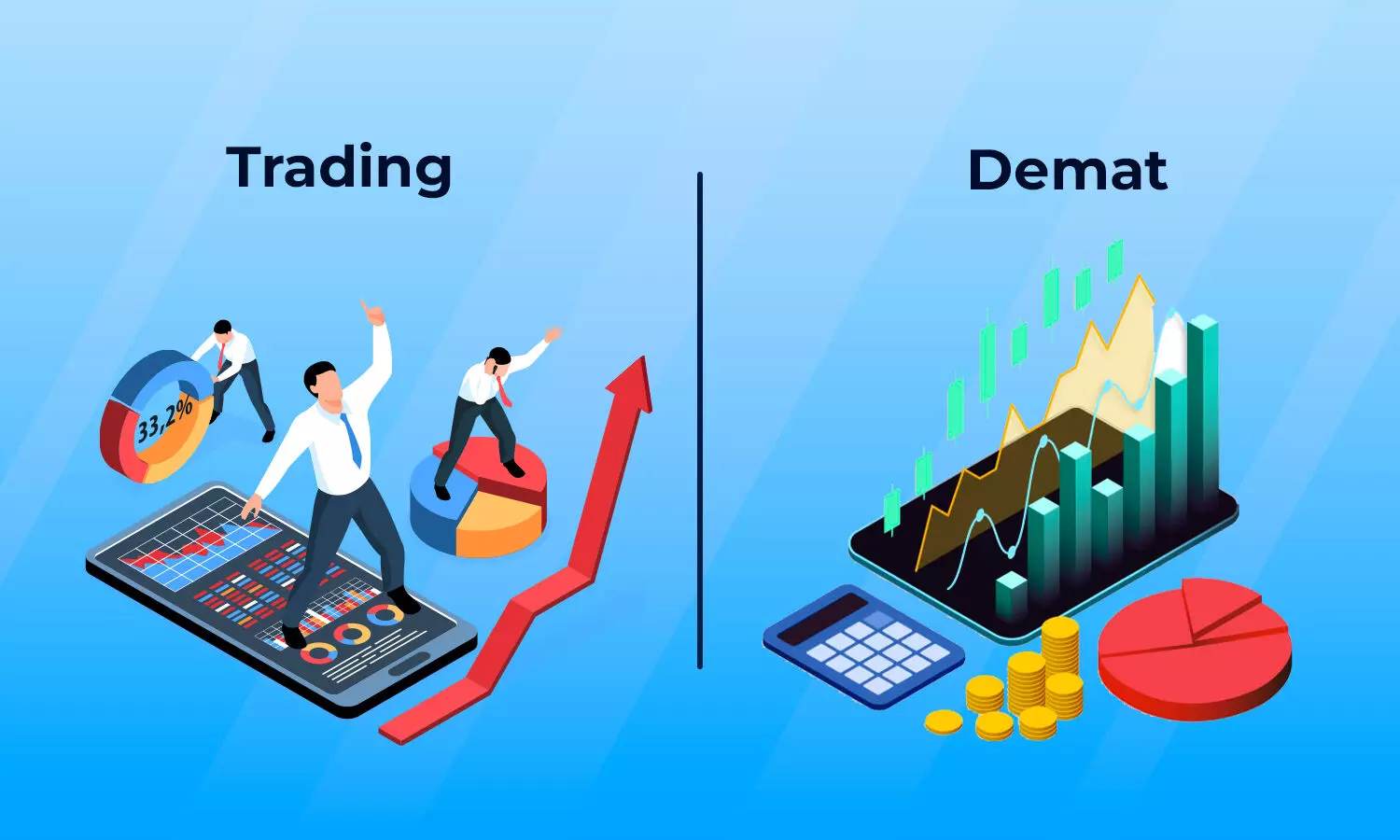 பங்குச் சந்தையில் பயன்படுத்தப்படுகிற டிரேடிங் (Trading) மற்றும் டி-மேட் (demat) போன்றவற்றின் அர்த்தம் என்ன?