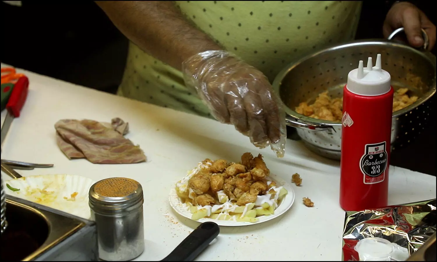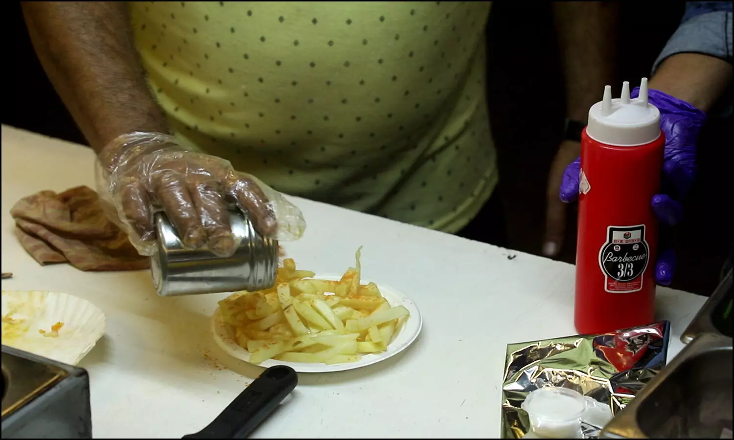 பிரெஞ்சு ஃப்ரைஸ் மேல் பெரி-பெரி மசாலாவை தூவும் போது...