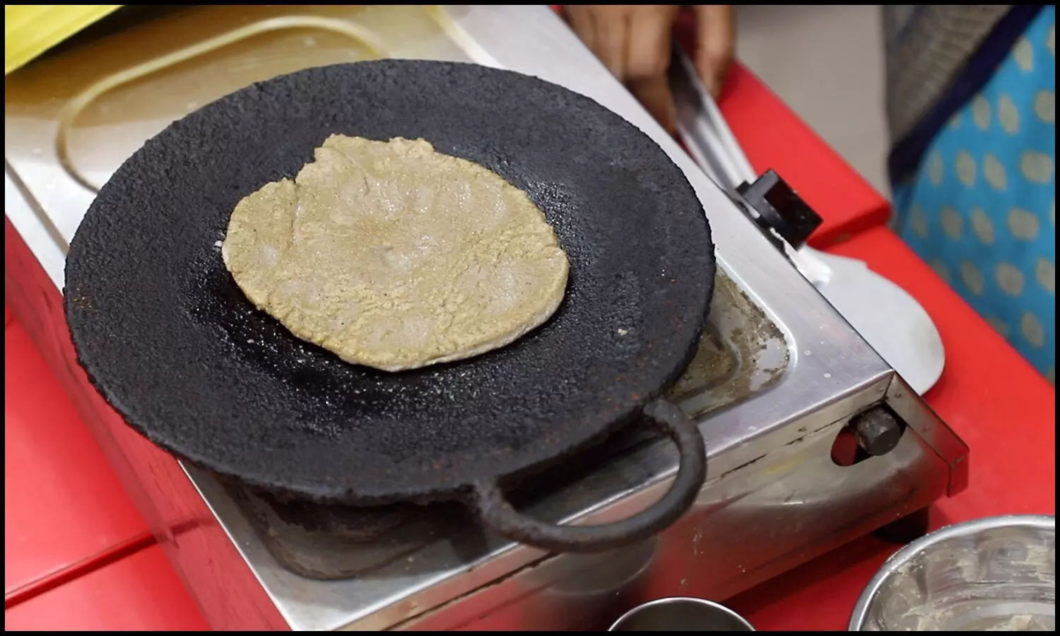 கம்பு மாவை அடை போன்று தட்டி வேகவைத்தல்