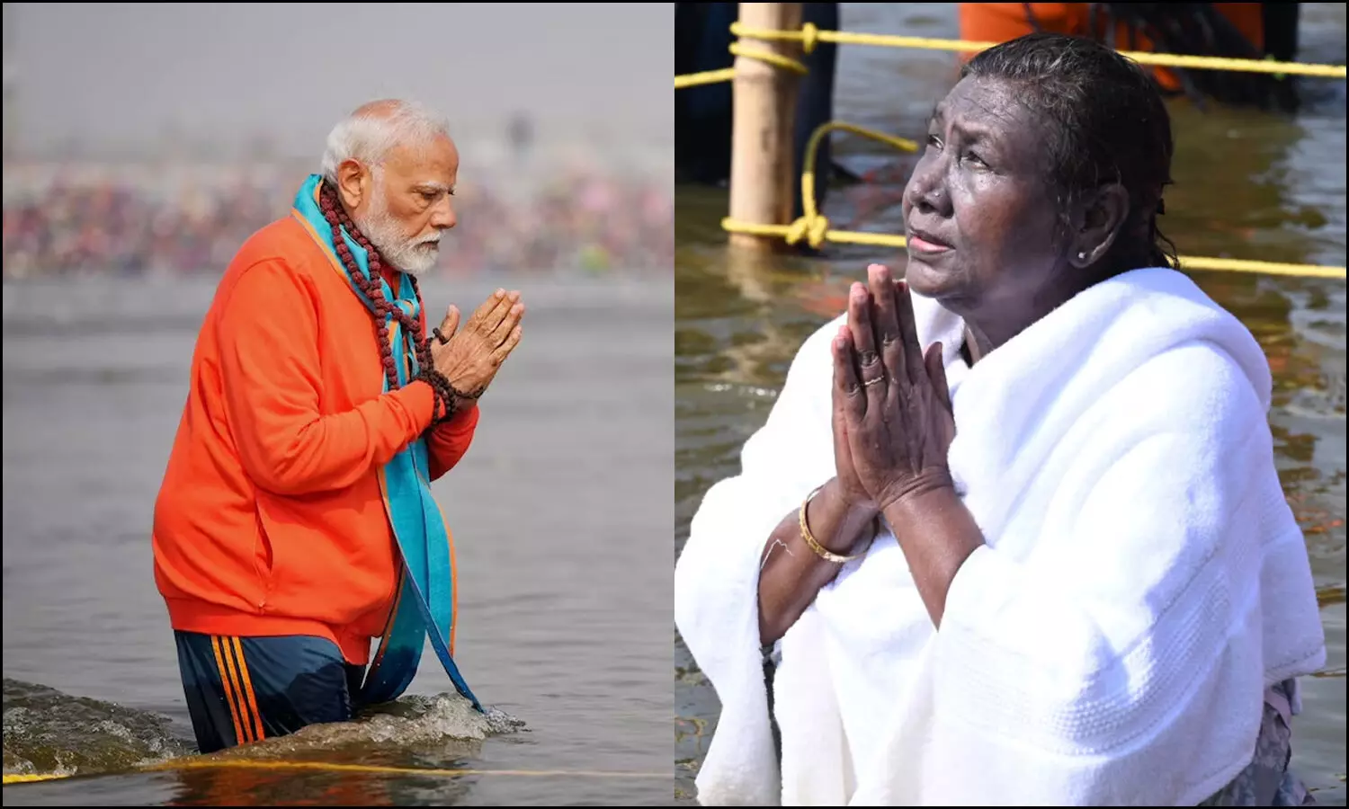 திரிவேணி சங்கமத்தில் நீராடிய பிரதமர் நரேந்திர மோடி மற்றும் ஜனாதிபதி திரௌபதி முர்மு