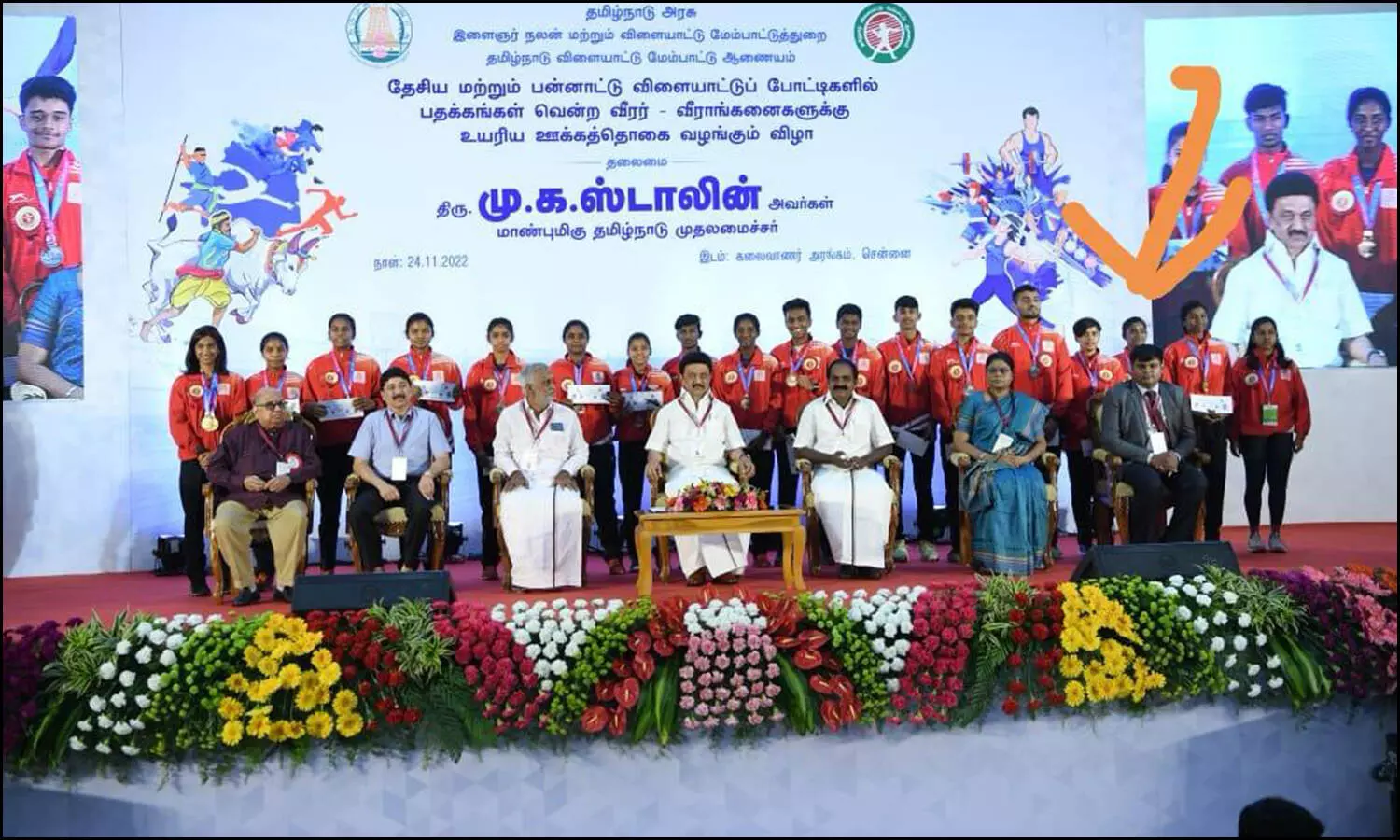 தமிழக அரசு நடத்திய விழாவில் பரிசு தொகையை பெற்றபோது...