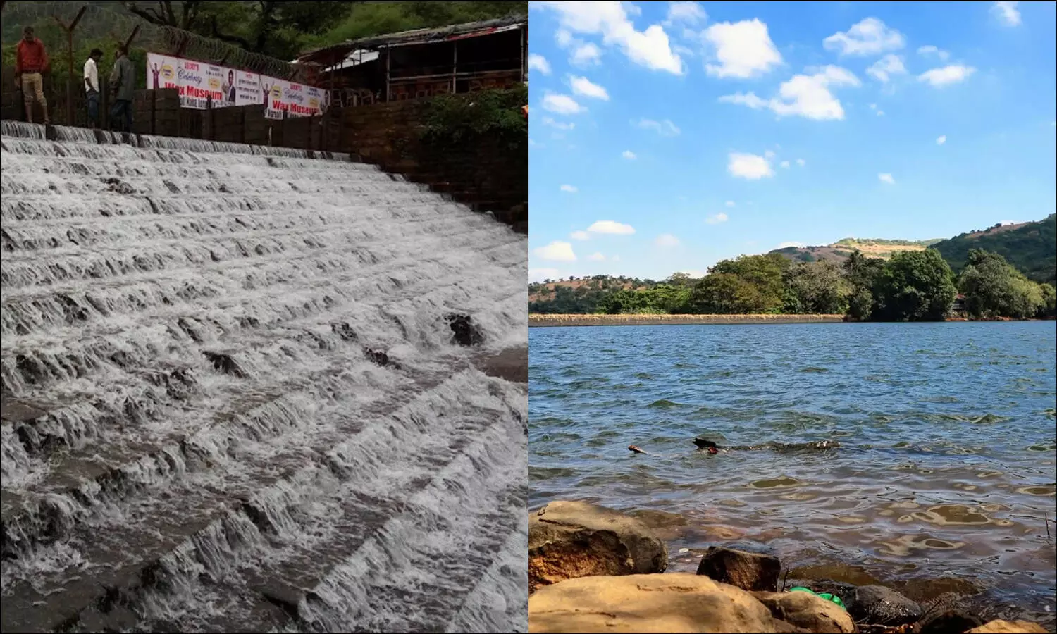 பூஷி அணையில் நீர் பெருக்கெடுத்து ஓடும் காட்சி
